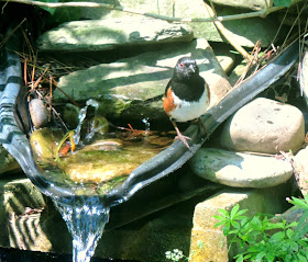 | Eastern Towhee* (see note below) visiting our little waterfall |