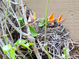 | Baby Robins (you can see shredded paper making up the nesting materials) |