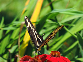 This butterfly likes my new red coneflower (echinacea). I lost the tag for this and I don't remember the name. When I purchased it, it reminded me of red zinnias and I know how much the butterflies like zinnias so I was hoping to attract some with this variety of coneflower. I think I was right in my assumption. It didn't get very tall this year, so I'm hoping next year that this coneflower will grow considerably taller.