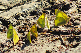 | Orange Sulphers otherwise known as Alfalfa Butterflies drinking in water and minerals from seaweed. |