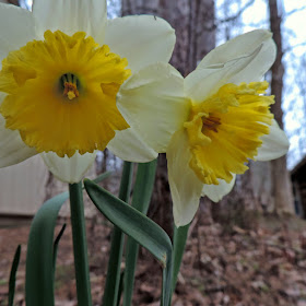 Well, that certainly wasn't the case here in Upstate New York. Thank goodness. We pulled in our driveway and there were just a few crocuses blooming. The daffodils were up and there was color in the buds, but none of them had opened yet.